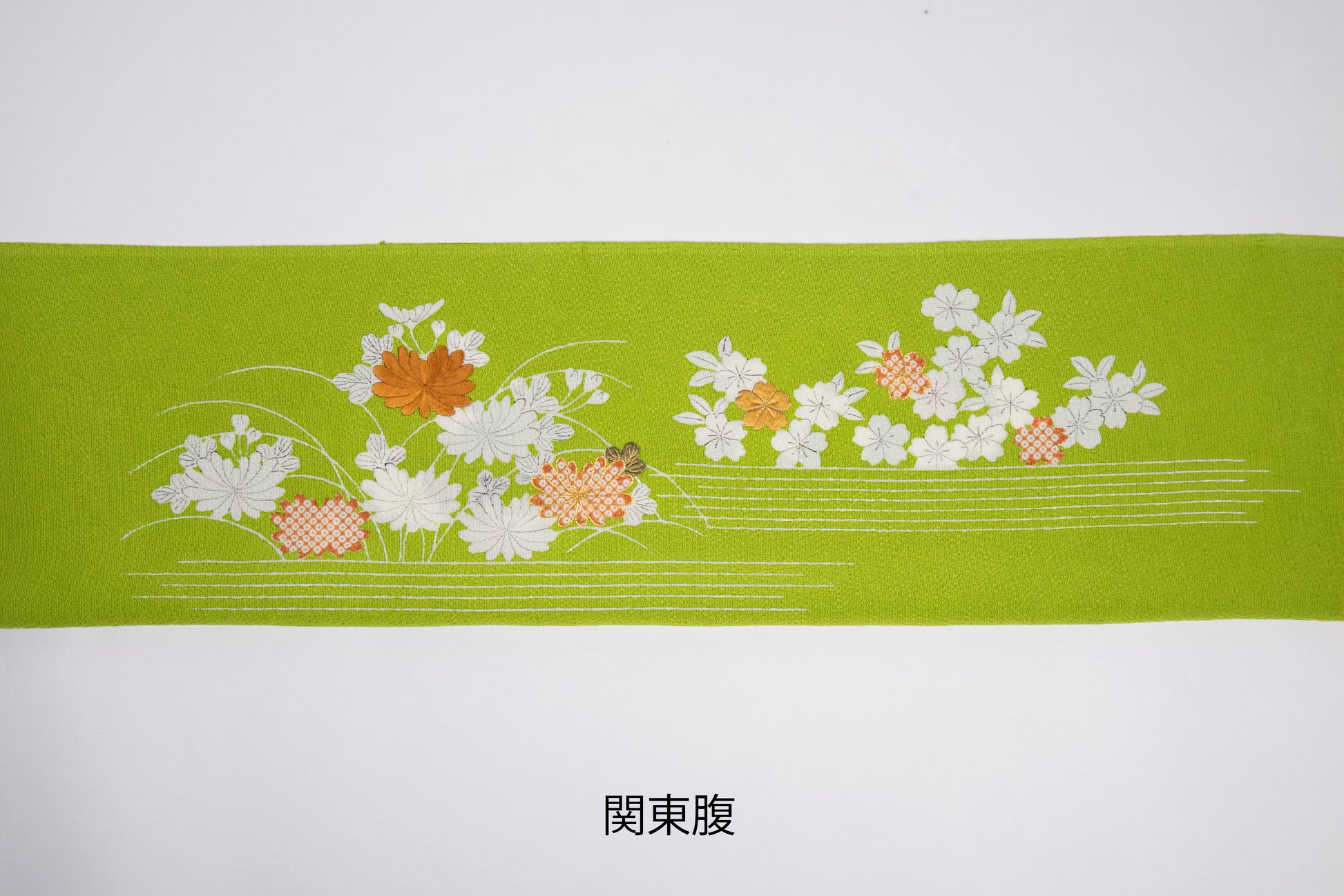 縮緬 御所解帯 鶸地 枝折戸 No.82574