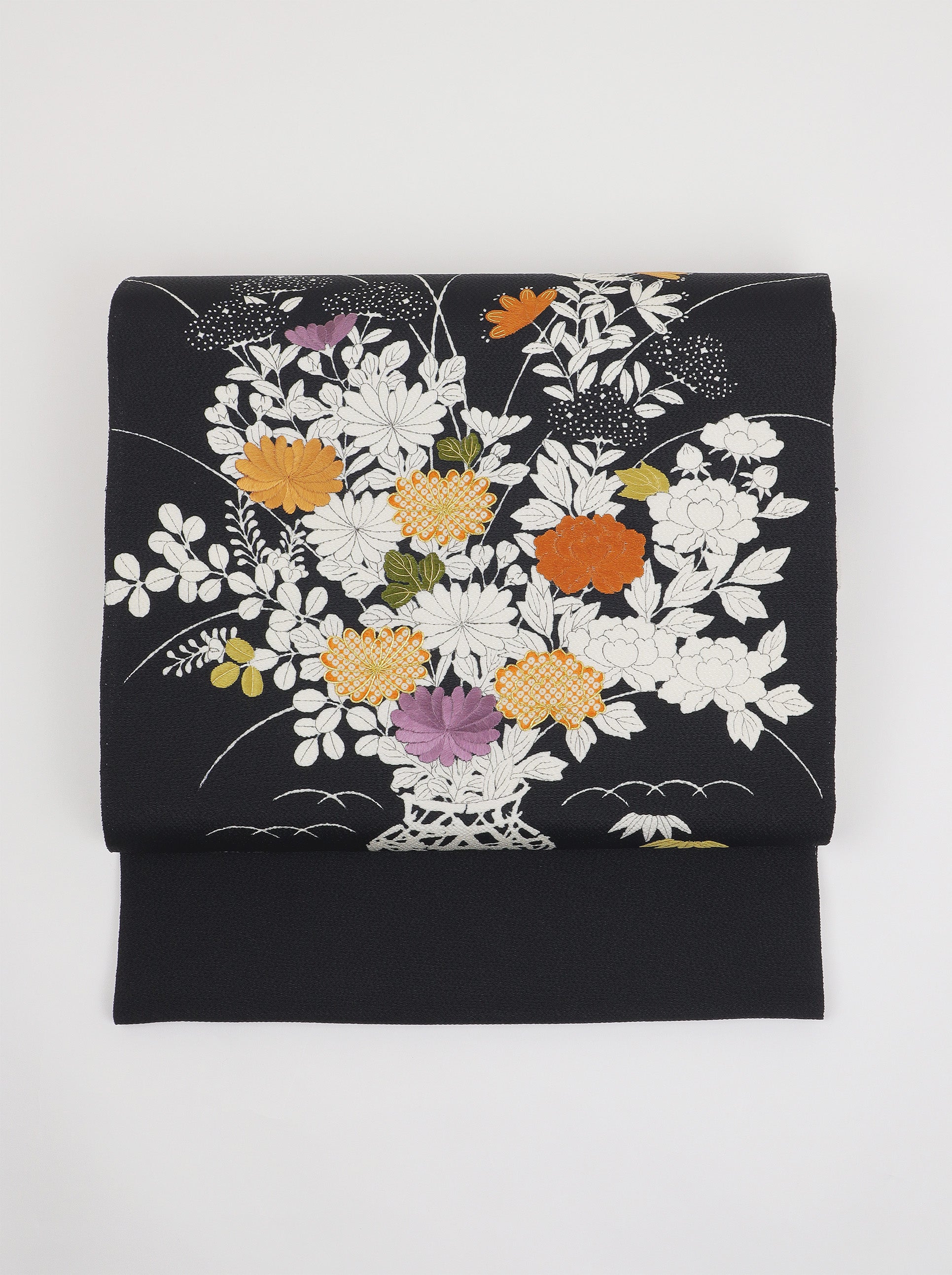 縮緬 御所解帯 黒地 花籠 No.82781