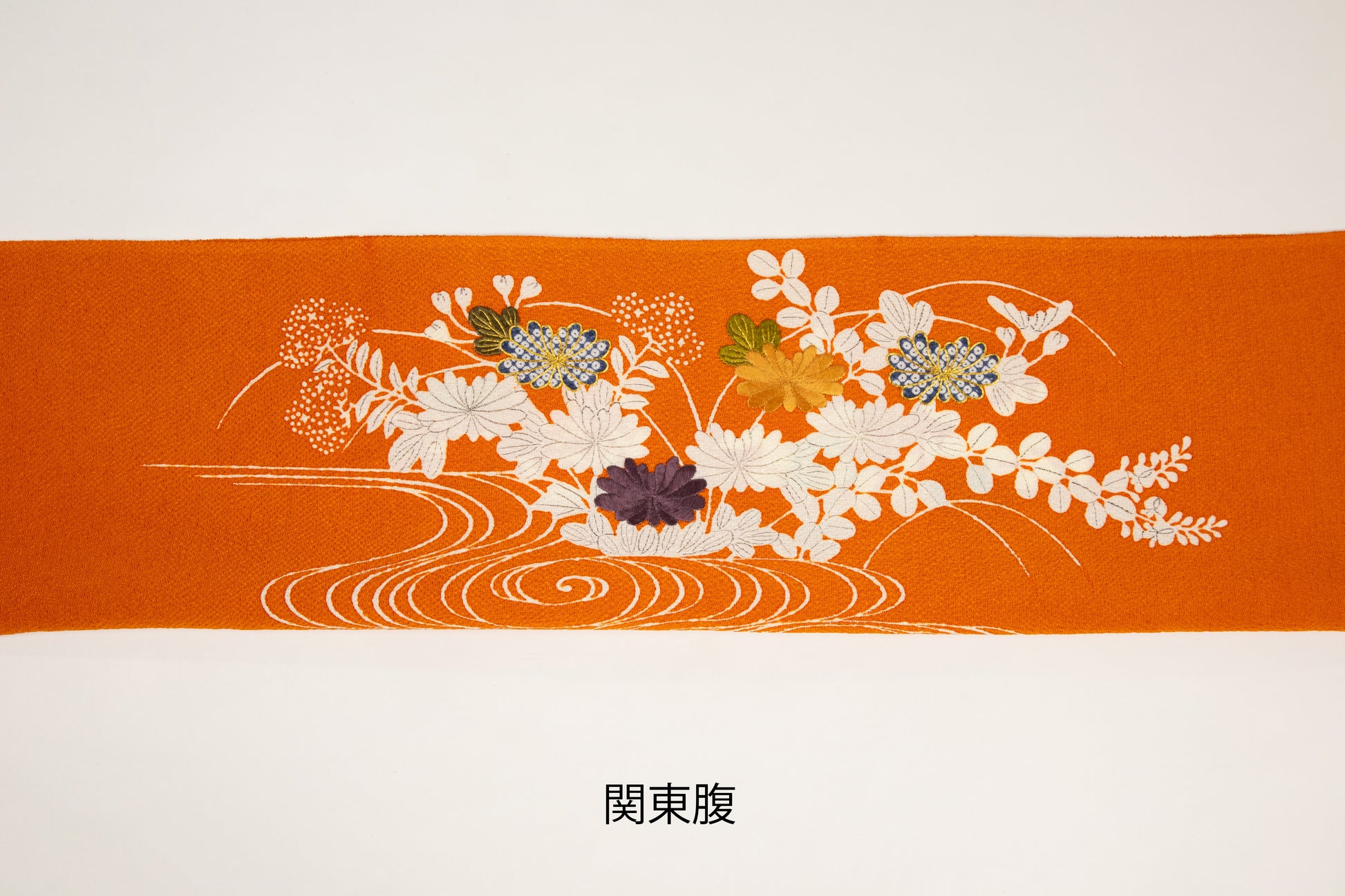 縮緬 御所解帯 朱地 秋草づくし No.82497